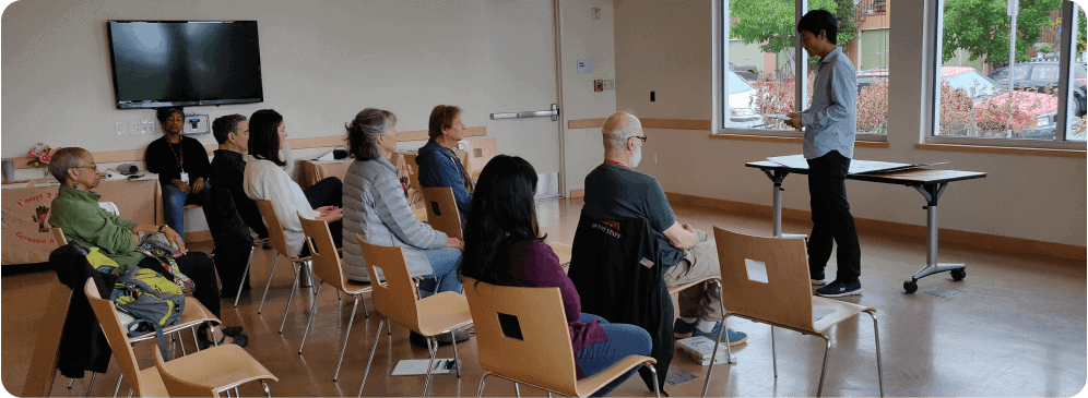 The gratitude sharing exercise allowed participants to self-reflect about things they are grateful for. The participants were open minded and positive, sharing their thoughts and insights. We invited the participants to move their bodies with exercises that were gentle and powerful. We explained the benefits of practicing meditation and the nature of the mind.
